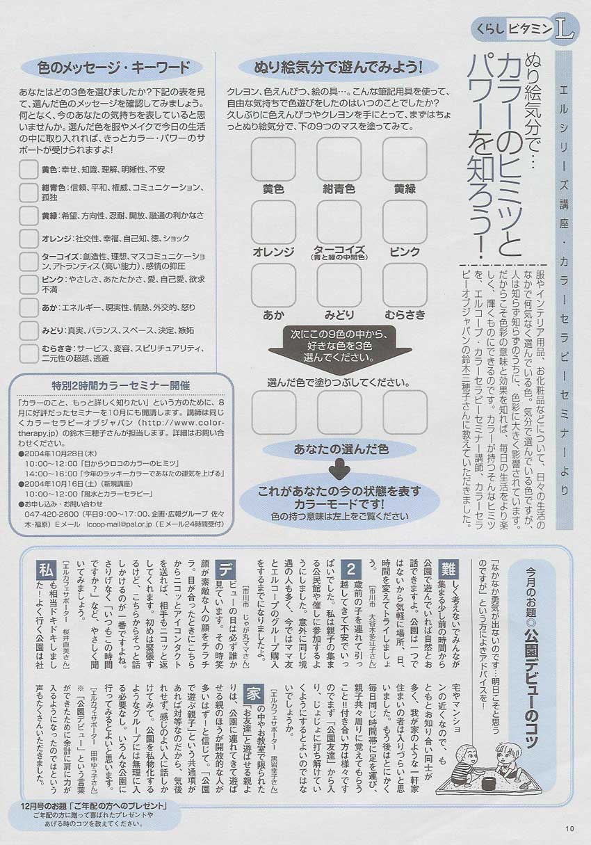 生活協同組合エル発行の「エルコープ・カフェ」10月号にカラーセラピー体験記事が掲載されました。