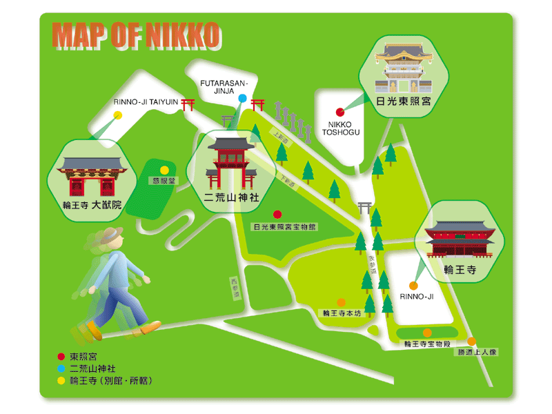 東照宮・輪王寺・二荒山神社・大猷院のイラストをクリックして各リアルバーチャルをご覧下さい